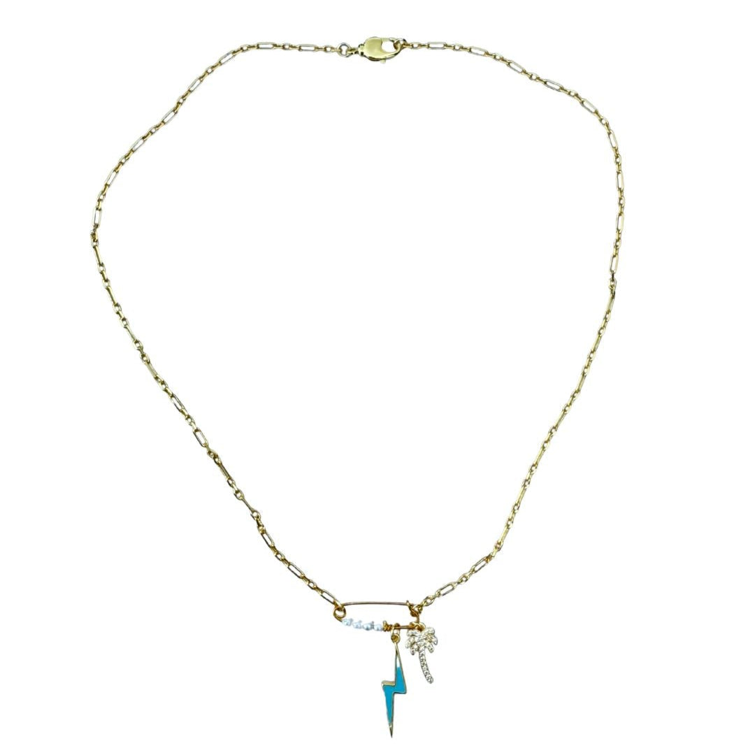 16.5" Gold filled necklace with palm tree and lightening bolt charm.